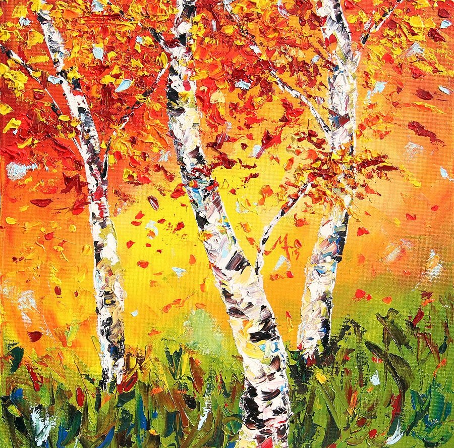 ![Осень березы живопись]()
