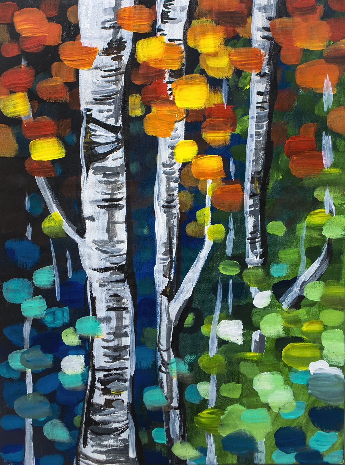 Рисование акрилом березы