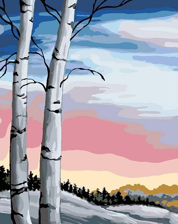 Береза красками