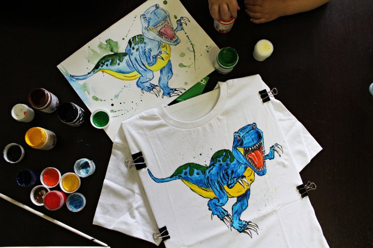 ![Роспись футболок акриловыми красками]()