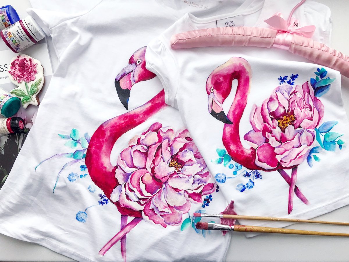 Фламинго красками на ткани
