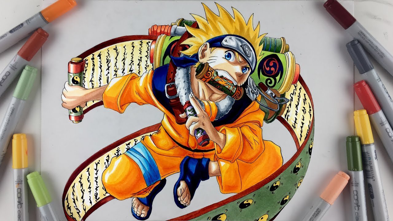 ![Наруто Узумаки рисунок фломастерами]()