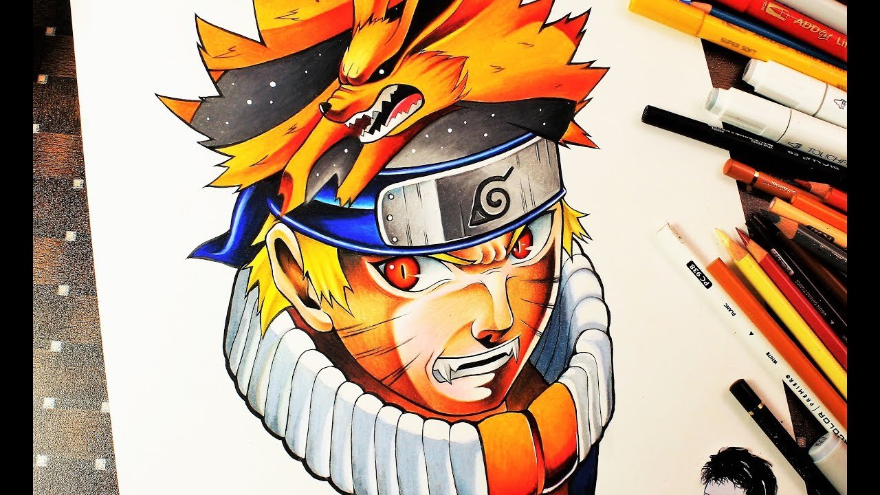 Наруто Узумаки рисунок фломастерами