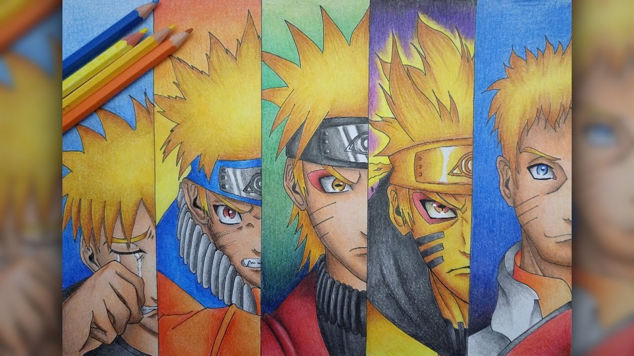 Наруто цветными карандашами