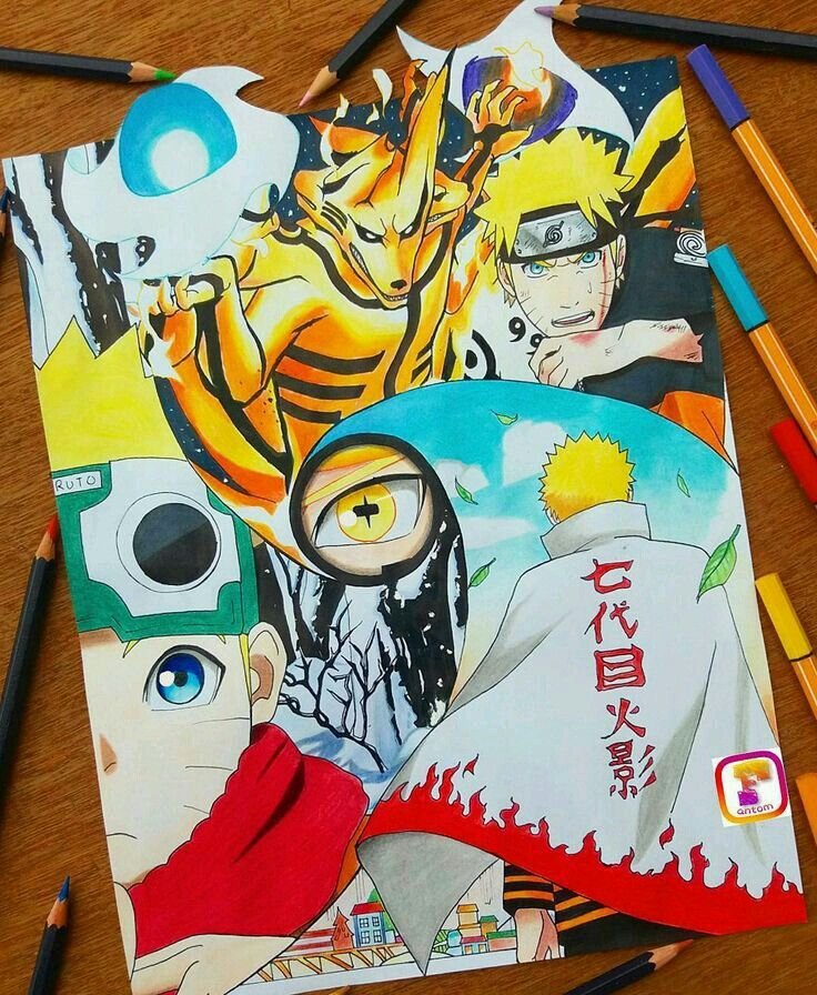 ![Наруто в карандашах разноцветных]()