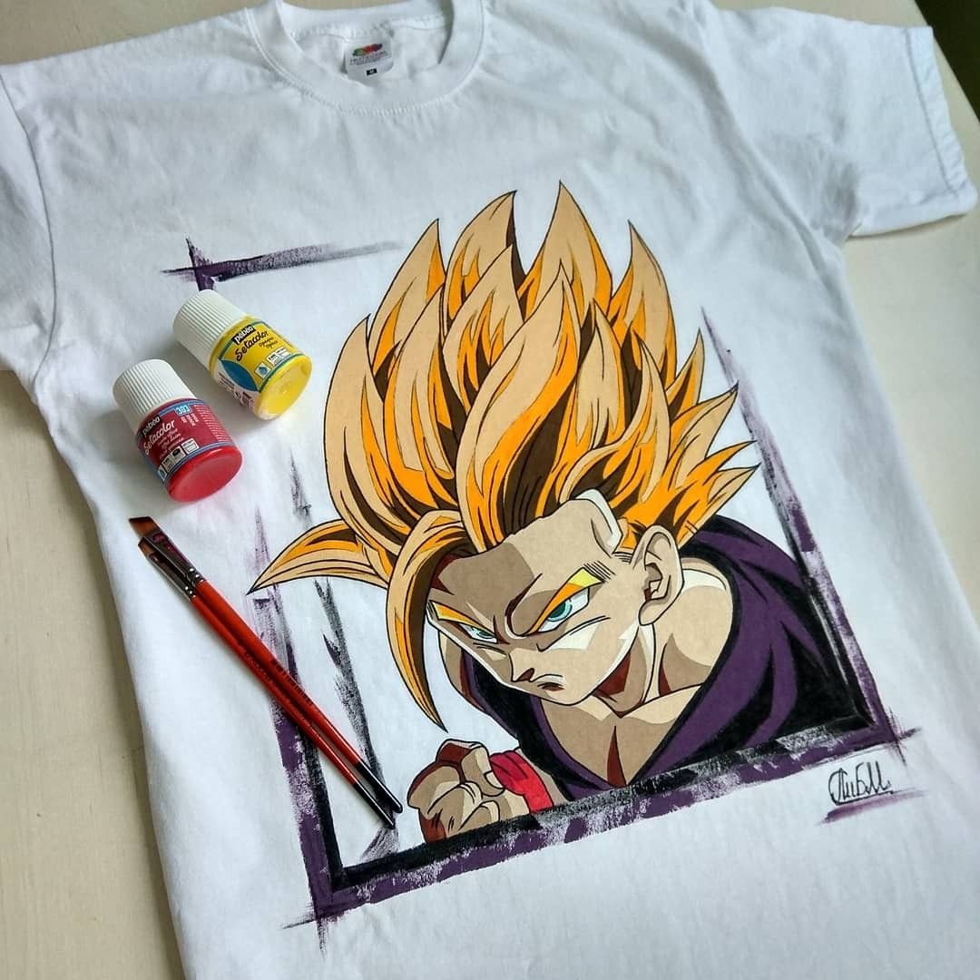 ![Аниме рисунки на одежде акриловыми красками]()