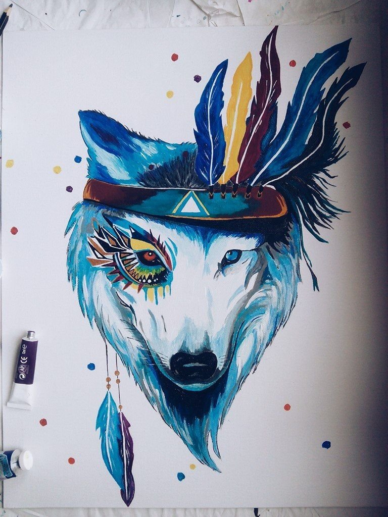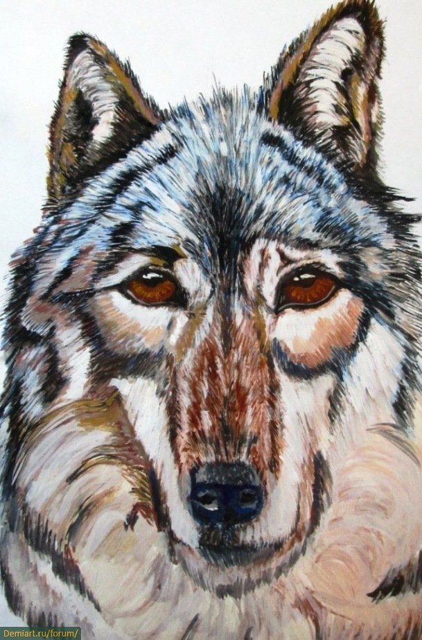 ![Волк акриловыми красками]()