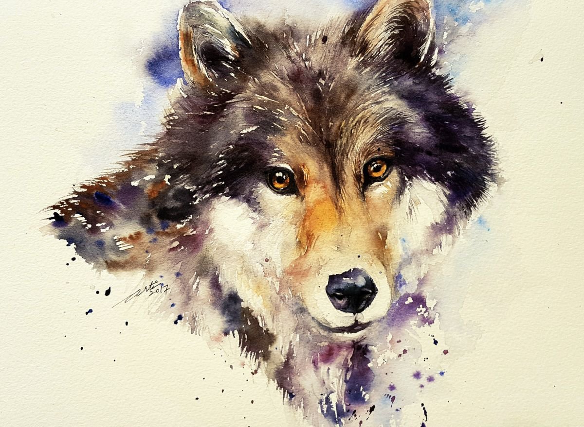 ![Волк акварелью]()
