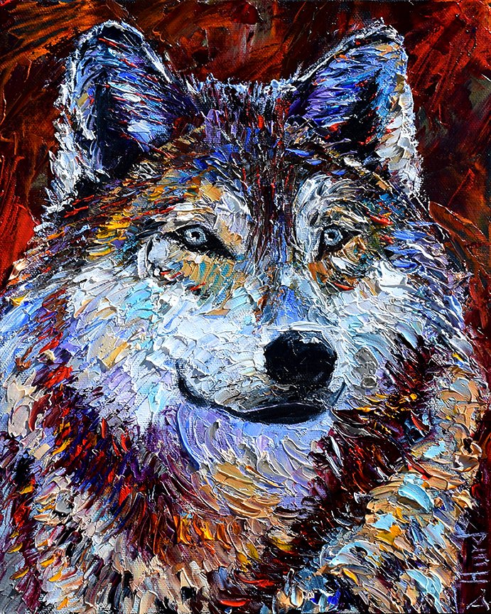 ![Волк масляными красками]()