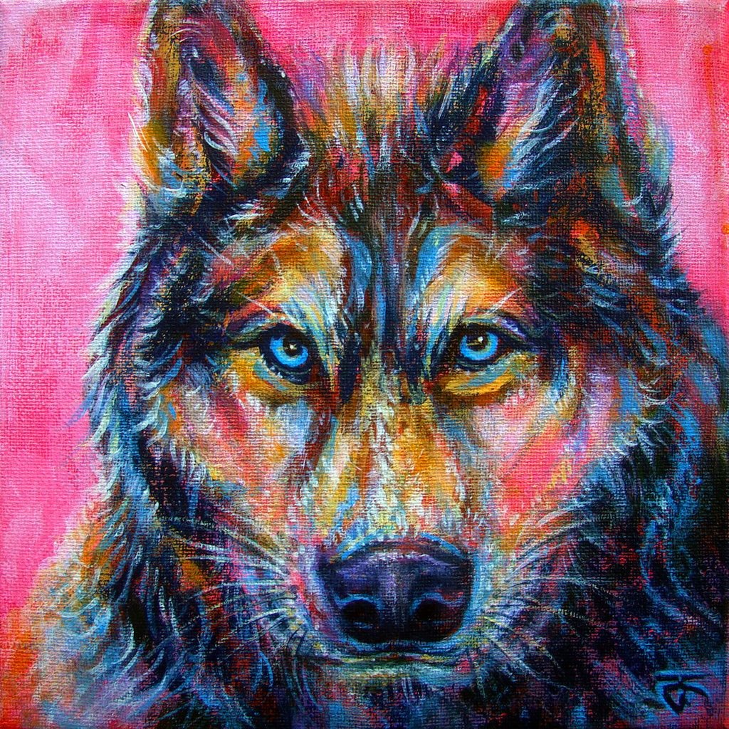 Живопись акрилом волк