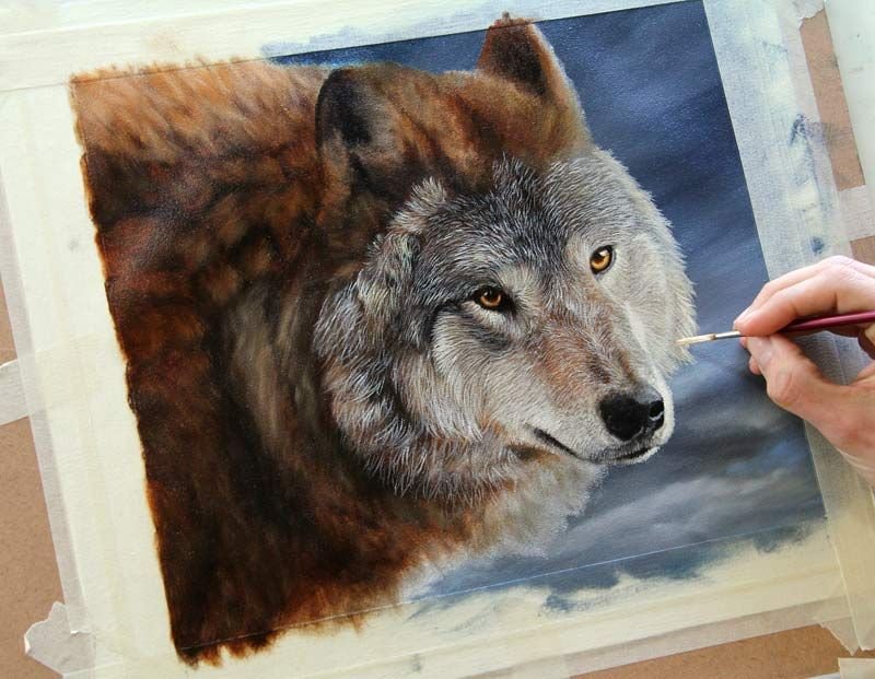 ![Живопись акрилом волк]()