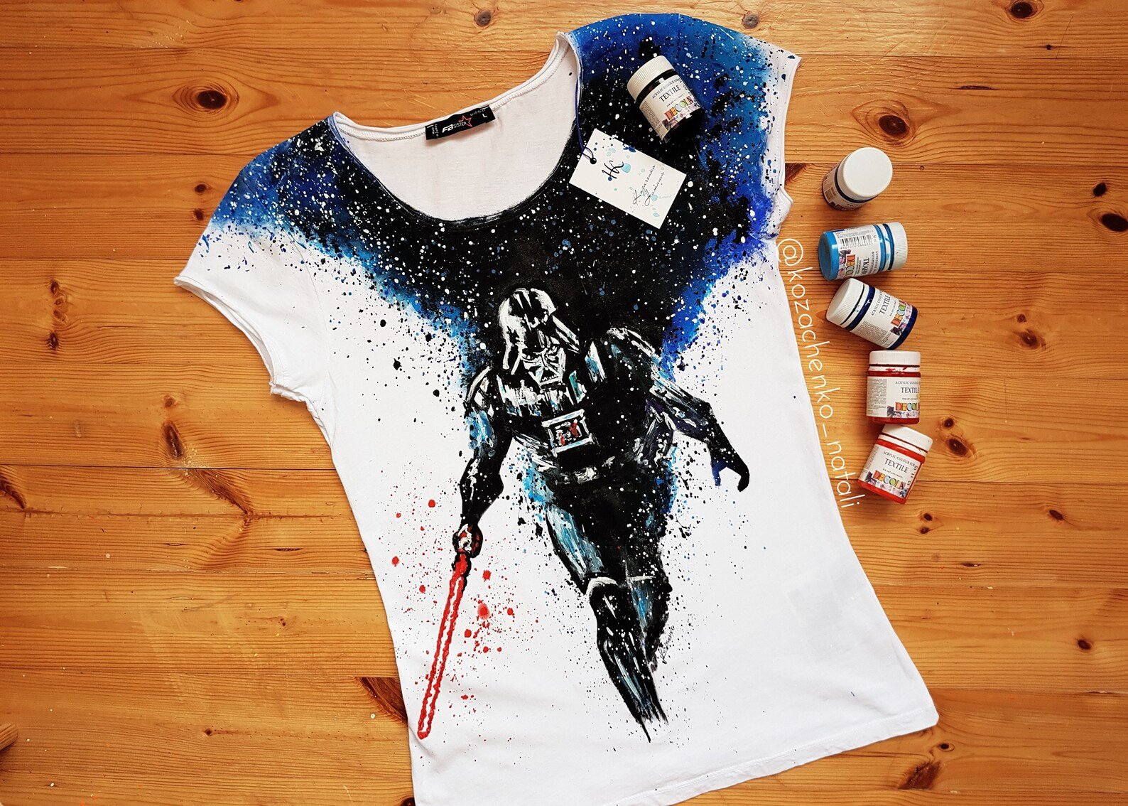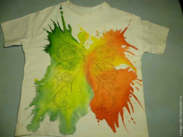 ![Рисунок красками на футболке]()