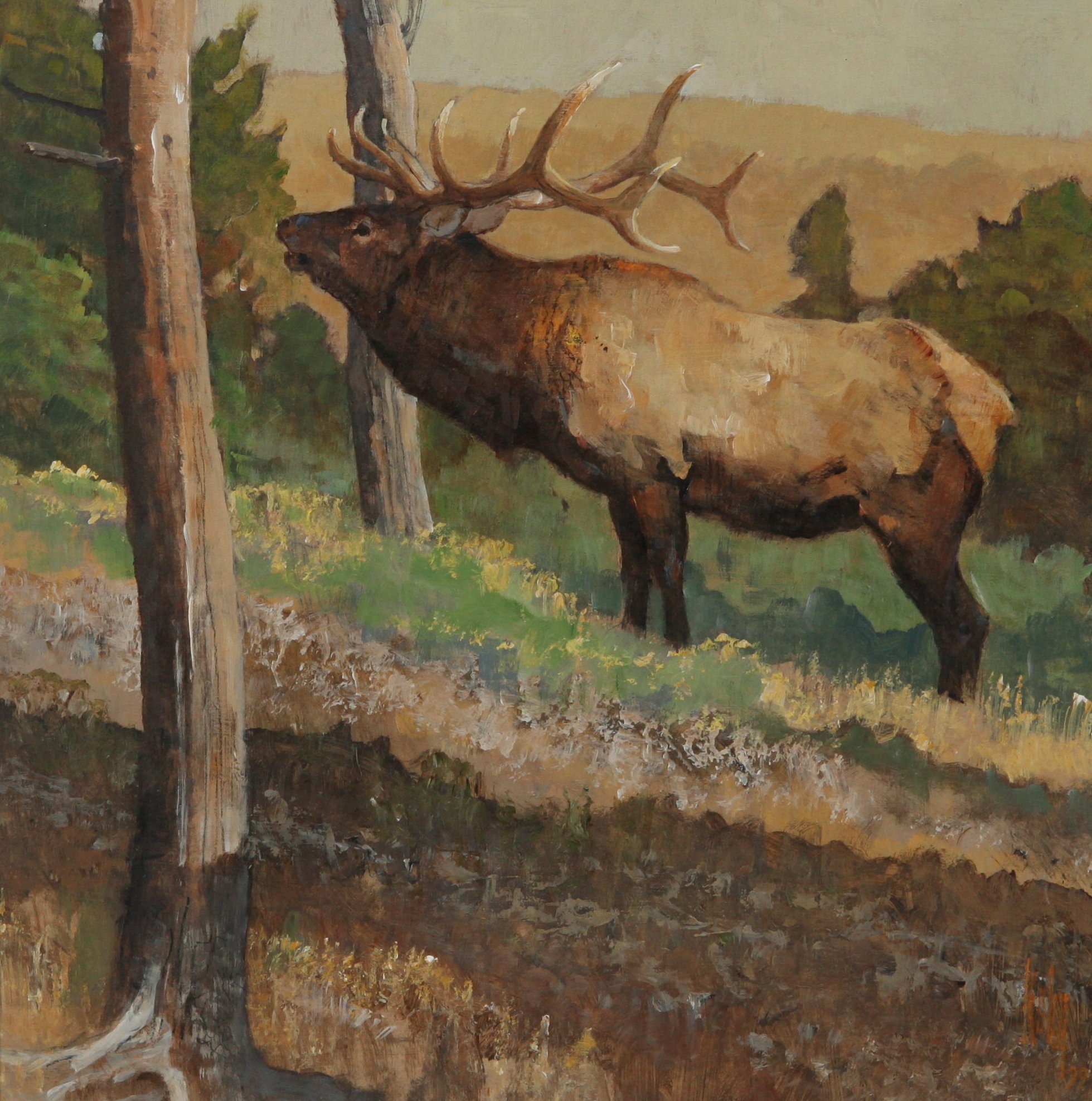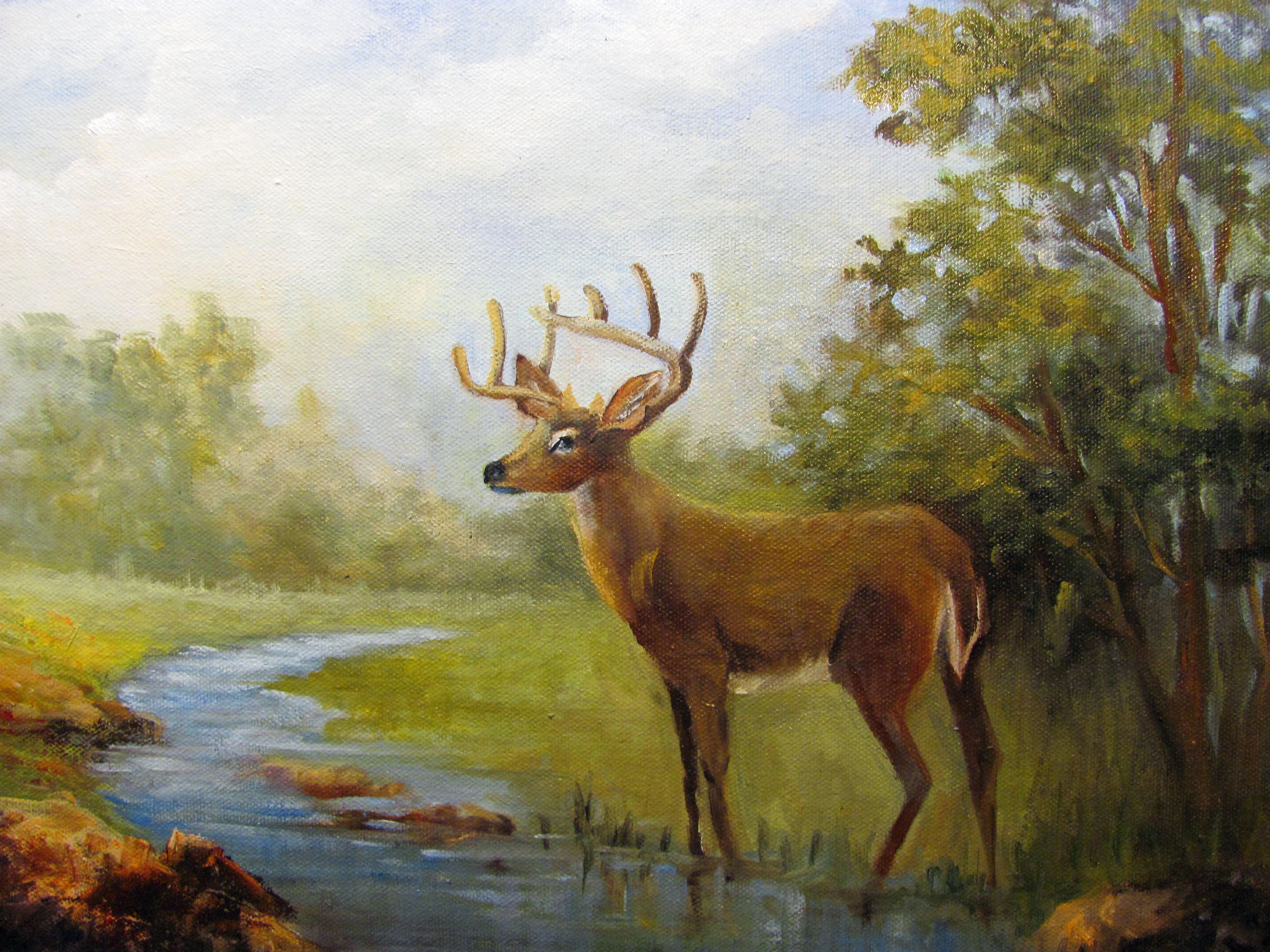 ![Рисунок лося в зимнем лесу сухой пастелью]()