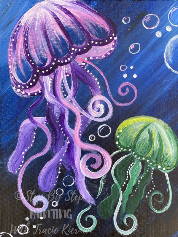 ![Рисование флуоресцентным акрилом медуза]()
