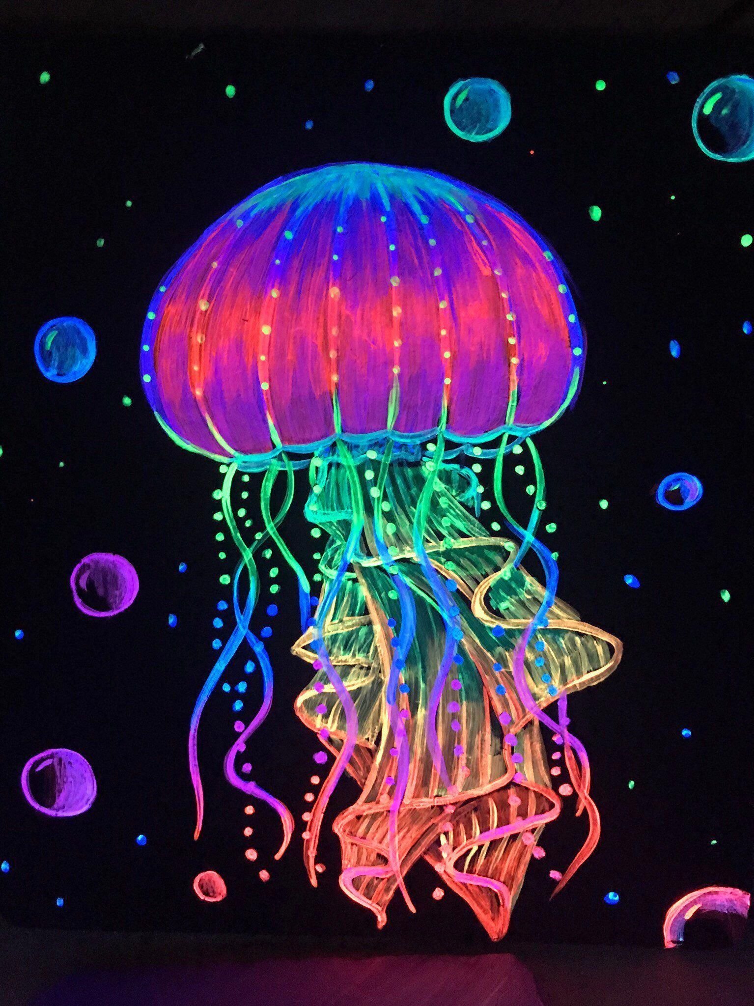 Рисование флуоресцентным акрилом медуза