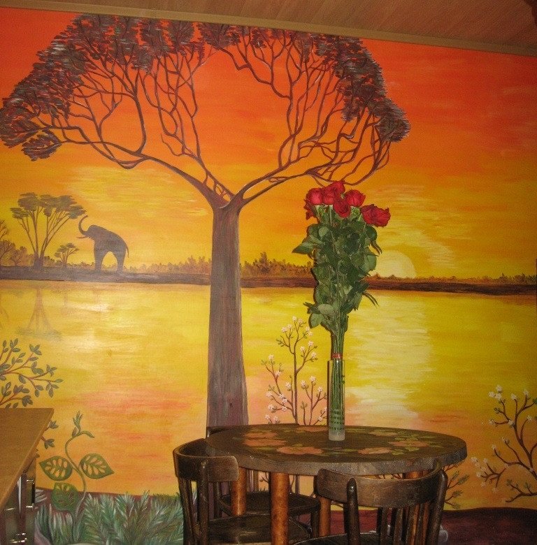Роспись стен на кухне акриловыми красками