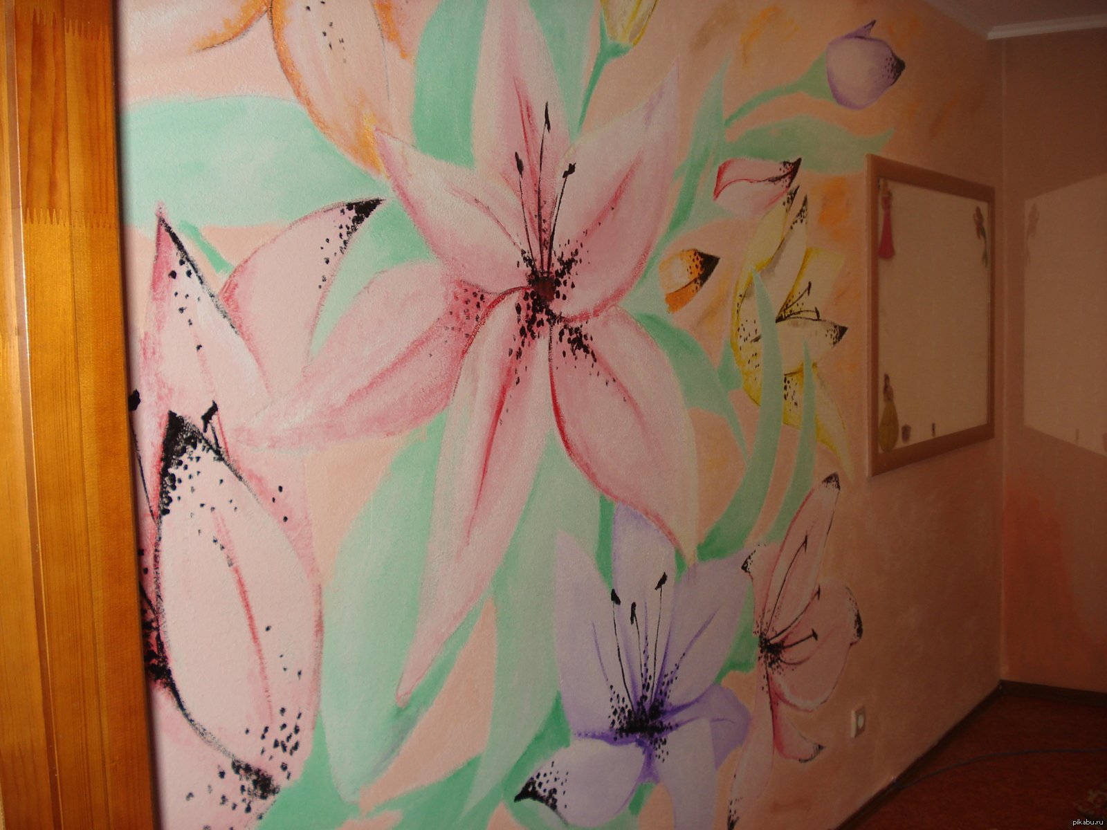 ![Рисунки акрилом на стене]()