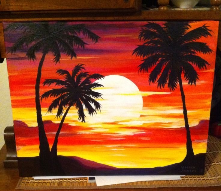 Закат акриловыми красками