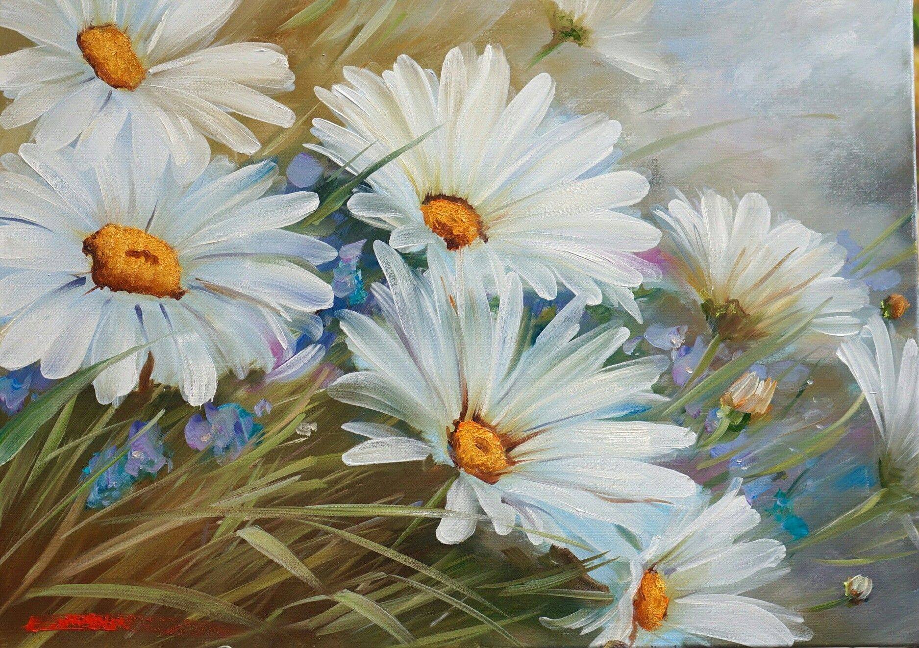 ![Цветы акрилом на холсте]()