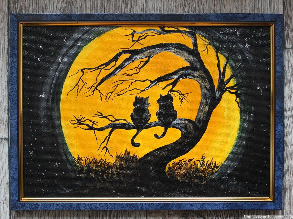 Луна акриловыми красками