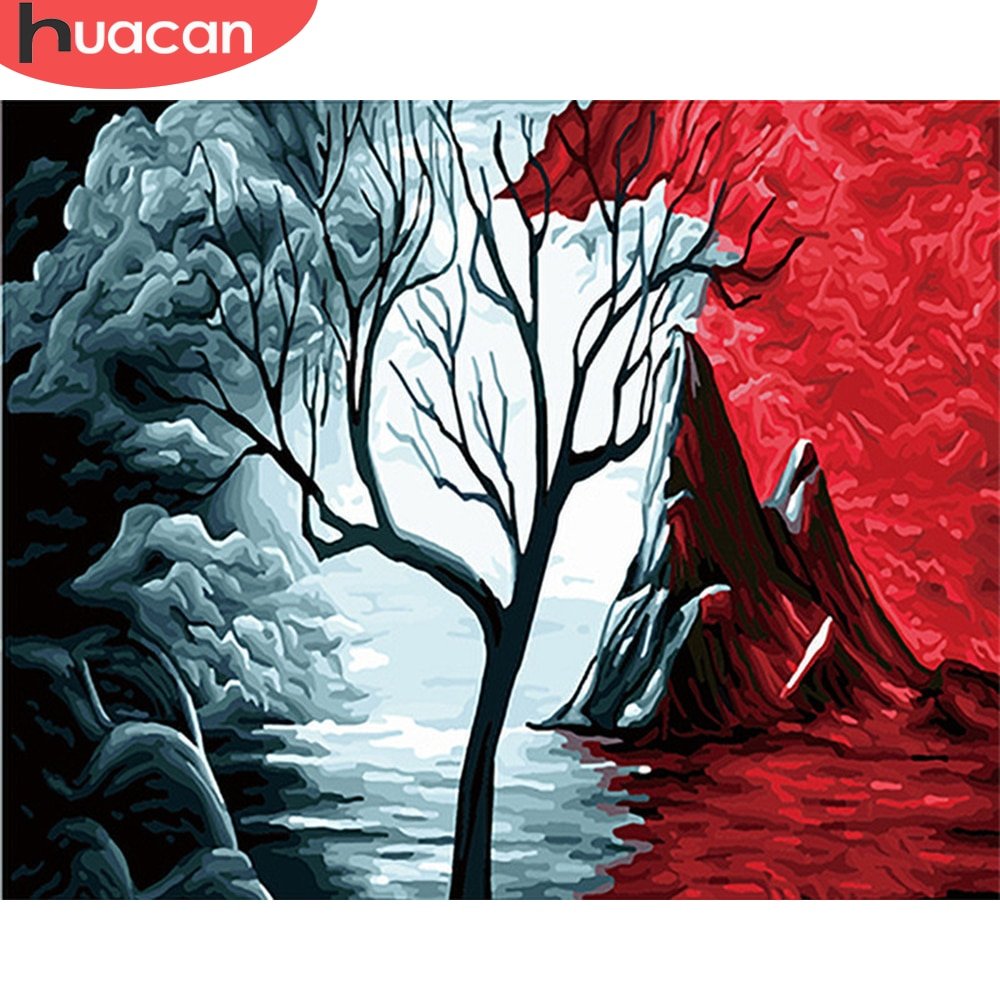 ![Дерево акриловыми красками на холсте]()