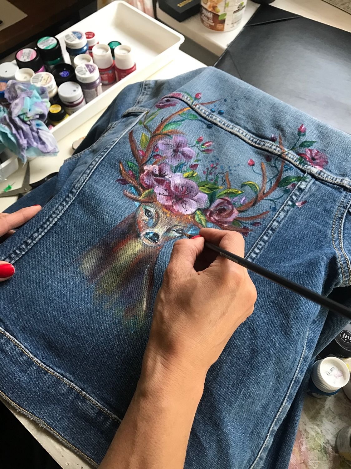 Роспись Джин куртки акриловыми красками