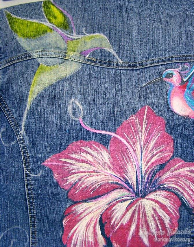 ![Рисование на джинсах акриловыми красками]()