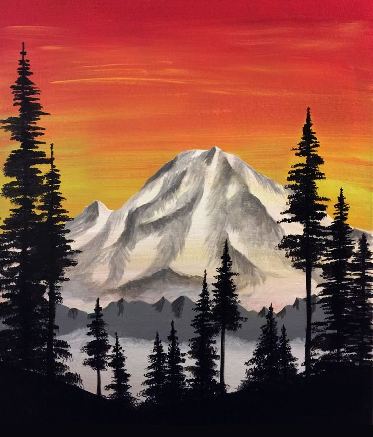 ![Горы закат акрил]()