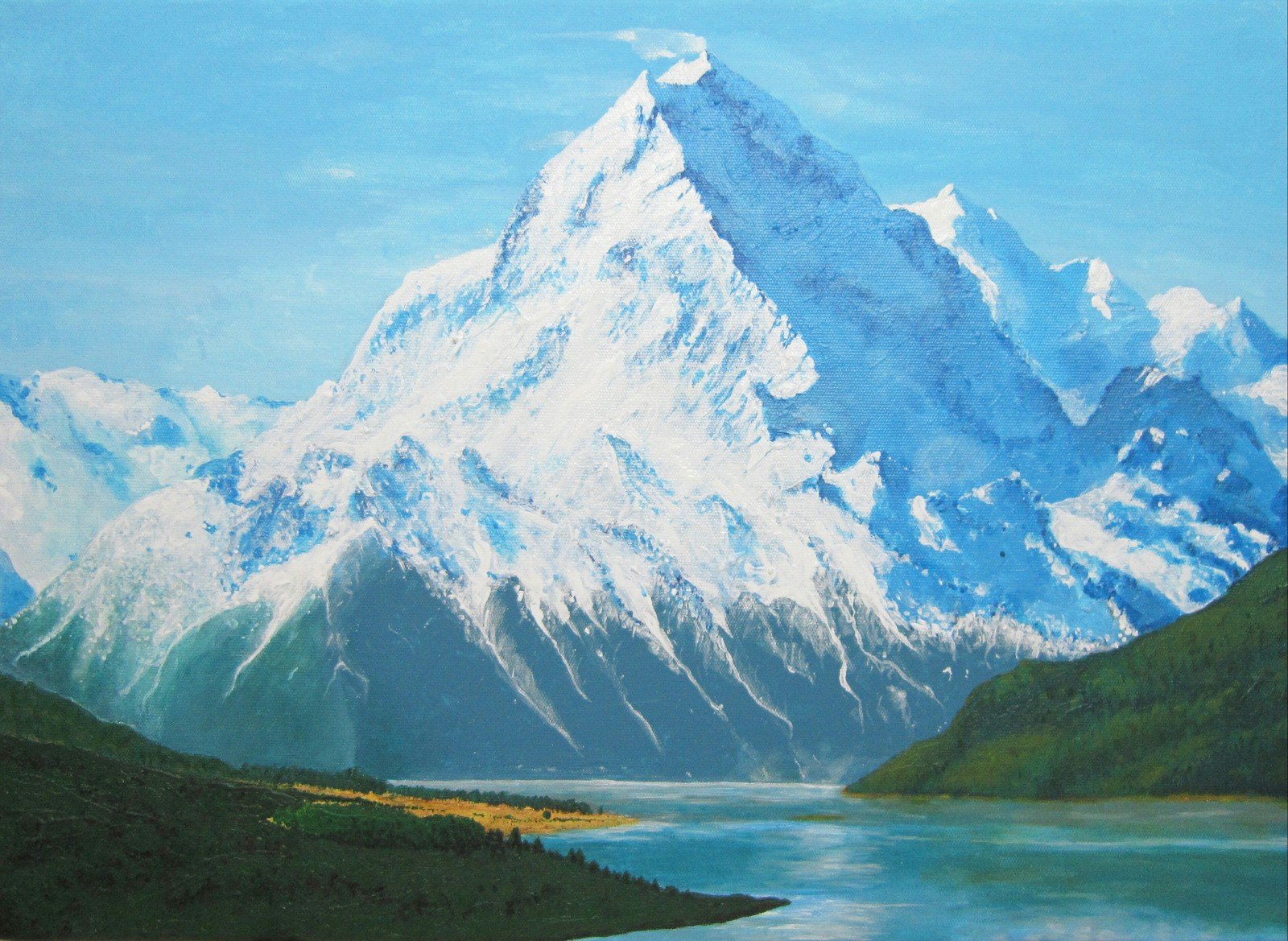 ![Снежные горы акрилом]()