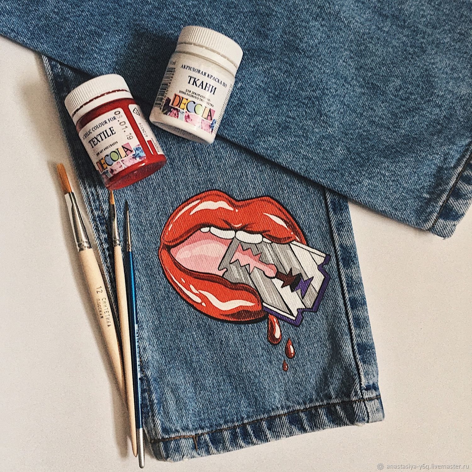 ![Джинсы разрисованные акрилом]()