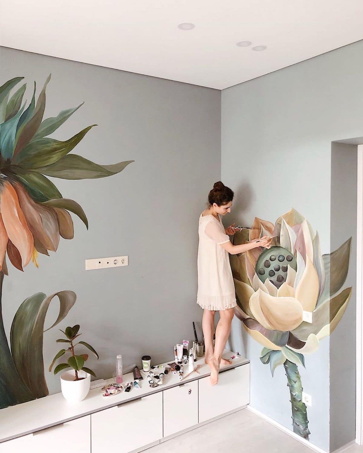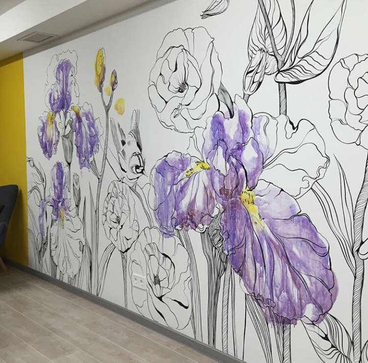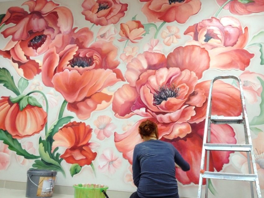 Роспись стен цветы акриловыми красками