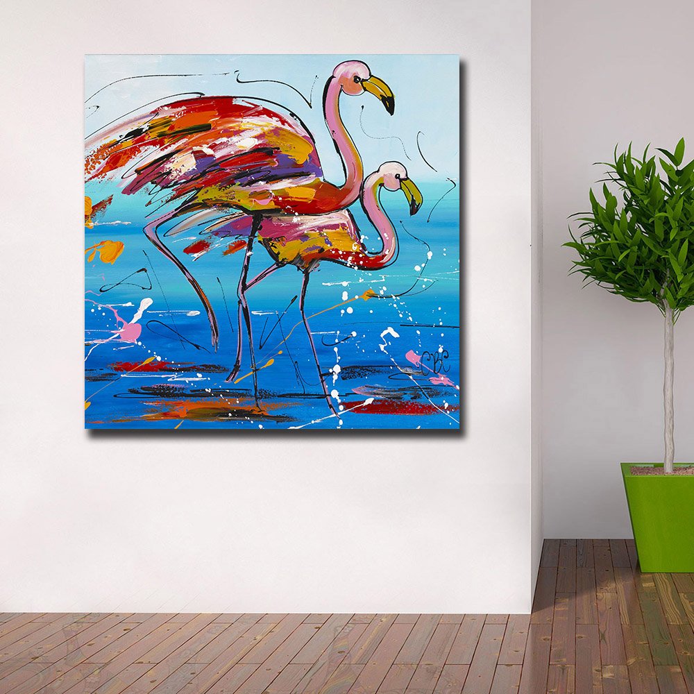 Фламинго на холсте красками