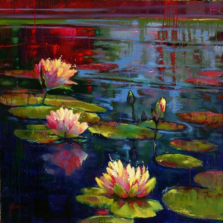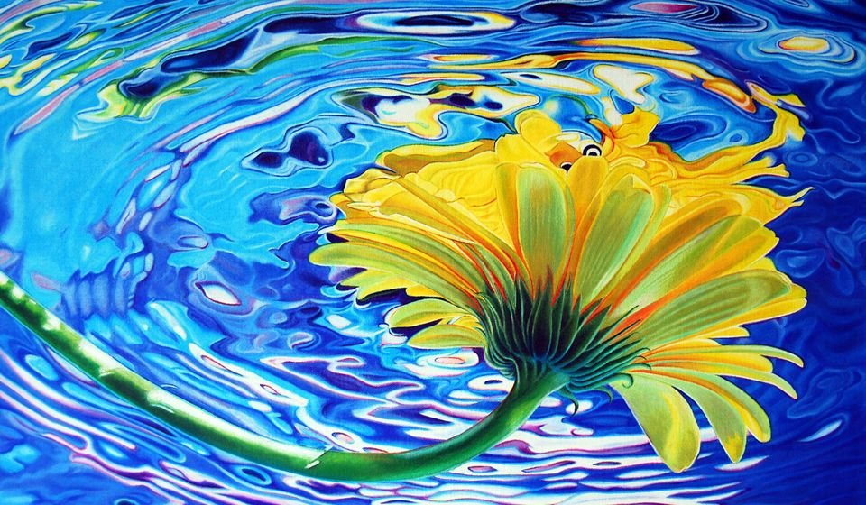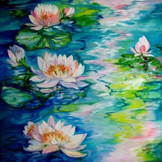 ![Отражение цветов в воде живопись]()
