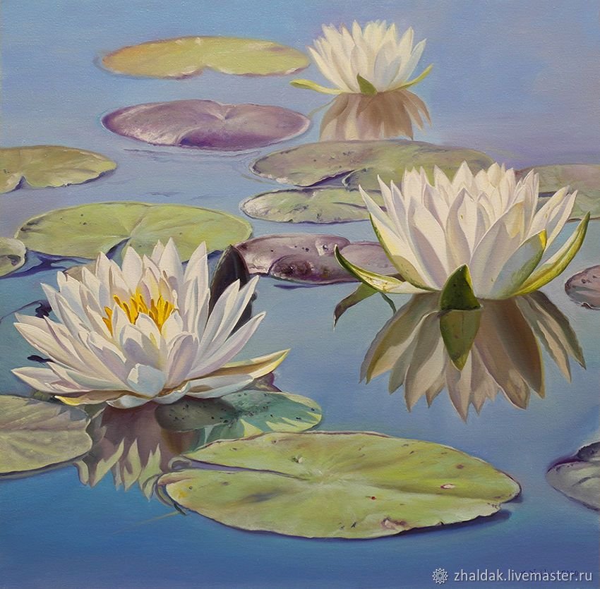 ![Кувшинки акрилом]()