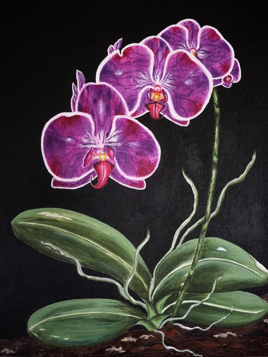 ![Орхидеи акрилом на холсте]()