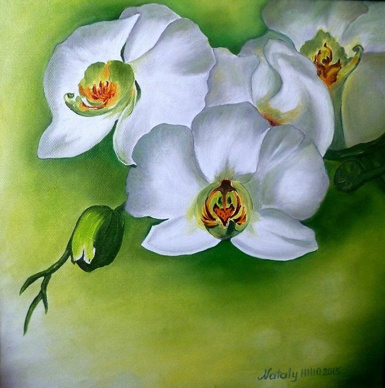 ![Белая Орхидея живопись]()