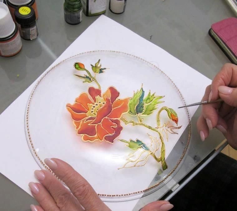 ![Роспись стеклянной тарелки]()