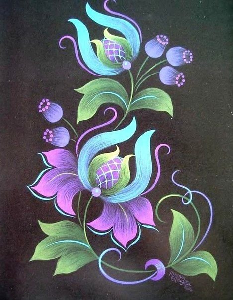 ![Тагильская роспись техника двойного мазка]()