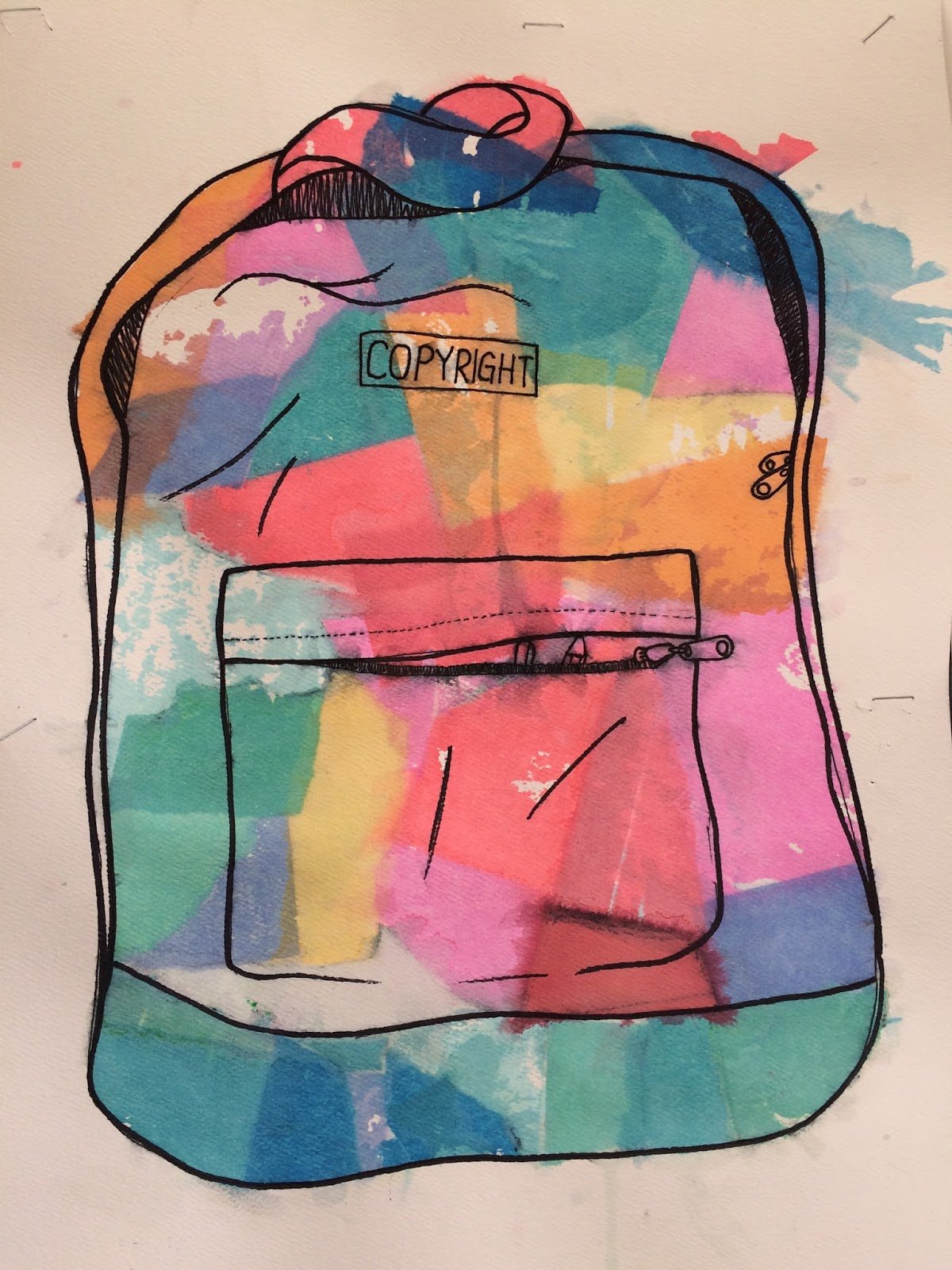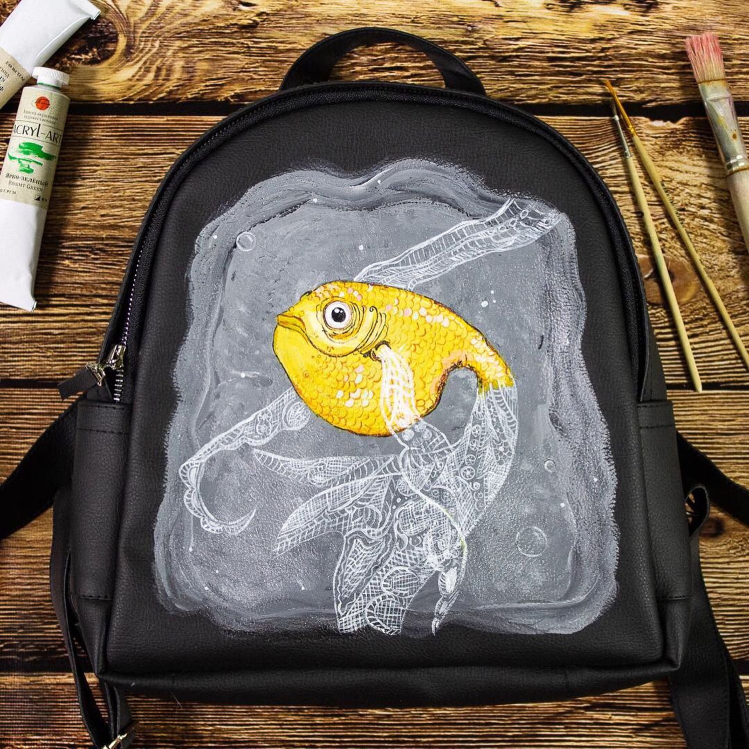 ![Роспись рюкзака акриловыми красками]()