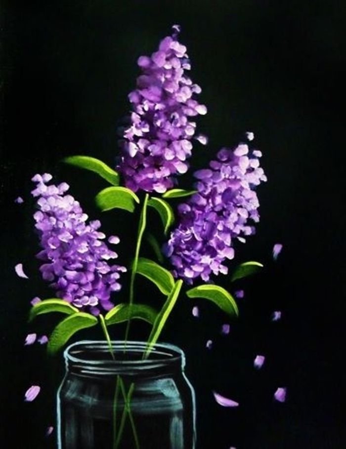 ![Сирень акрилом на холсте для начинающих]()