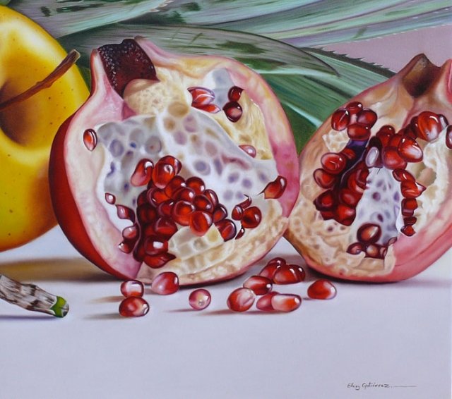 ![Гранаты фрукты живопись]()