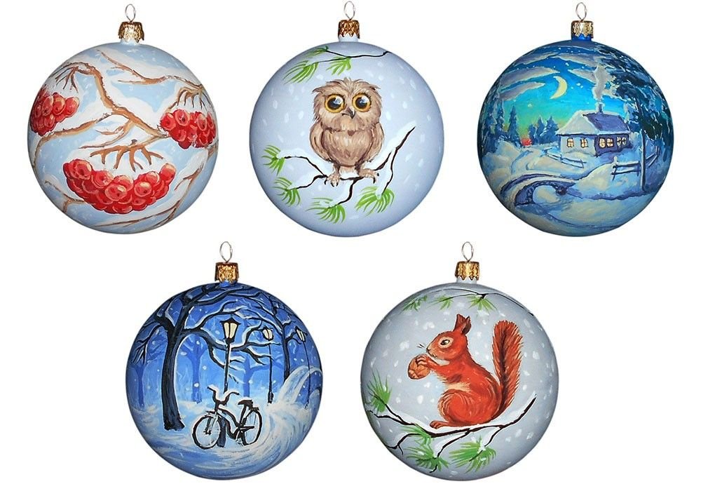 ![Пейзажи на новогодних шарах]()