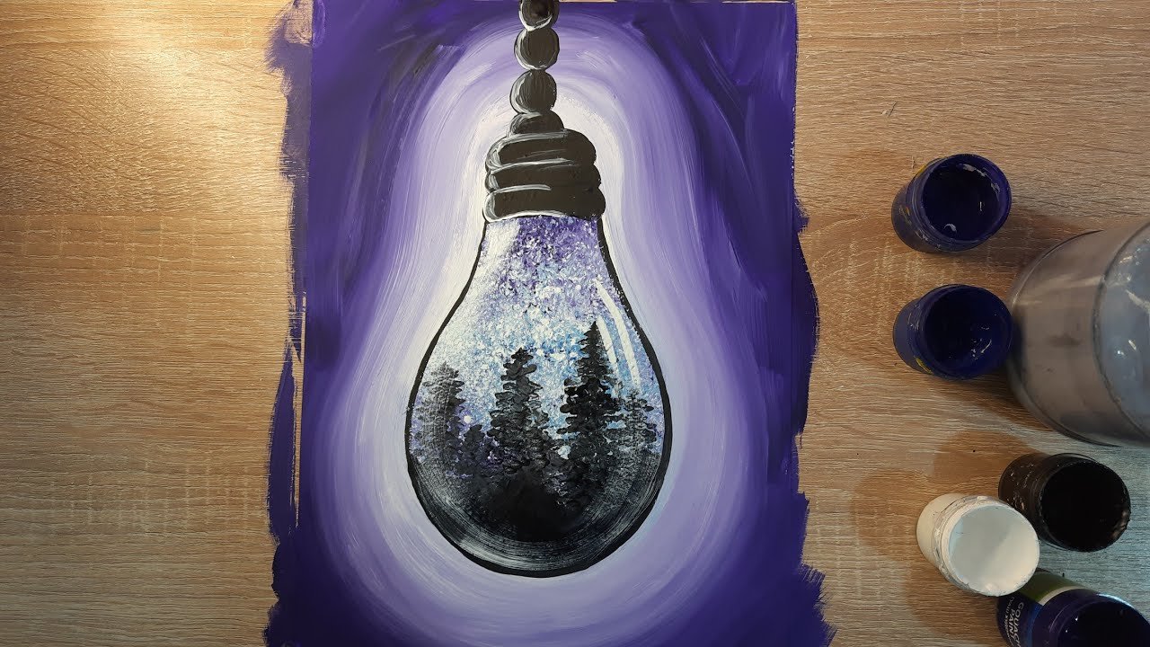 Лампочка рисунок акварелью