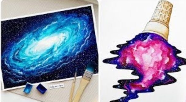 ![Космос акварелью и маркером]()