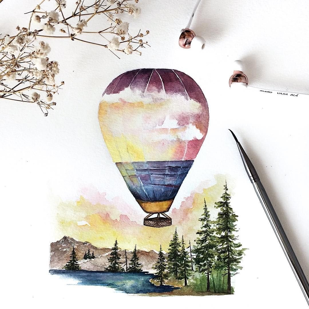 ![Акварельный воздушный шар]()