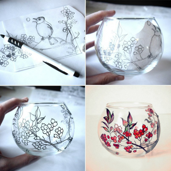 ![Роспись по стеклу акриловыми красками для начинающих]()