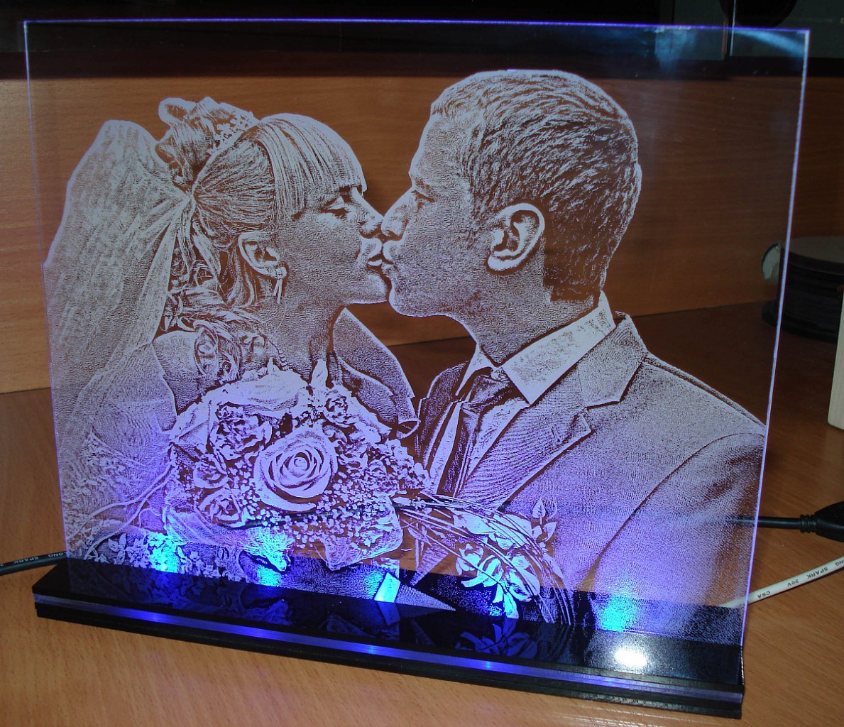 ![Гравировка на стекле с подсветкой]()