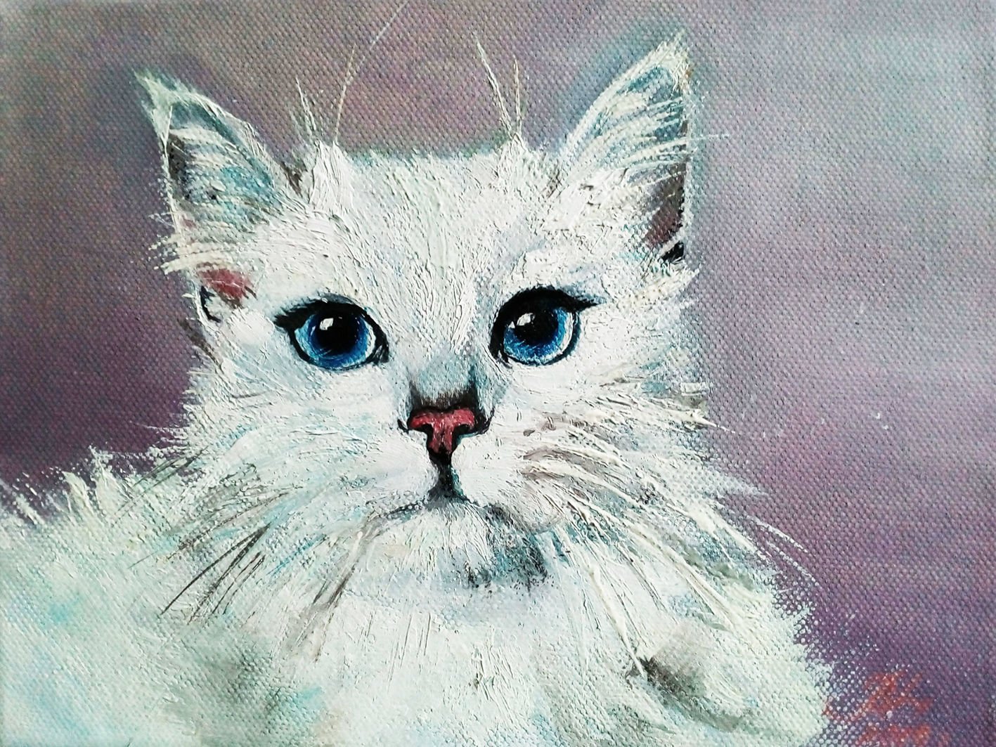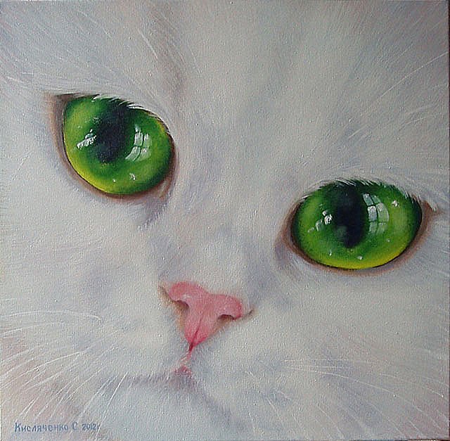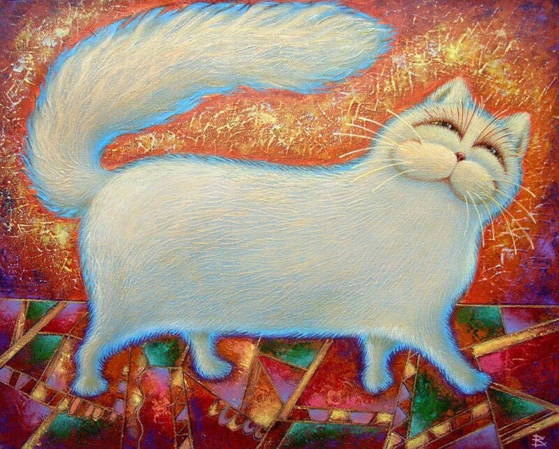 Белый кот картина маслом