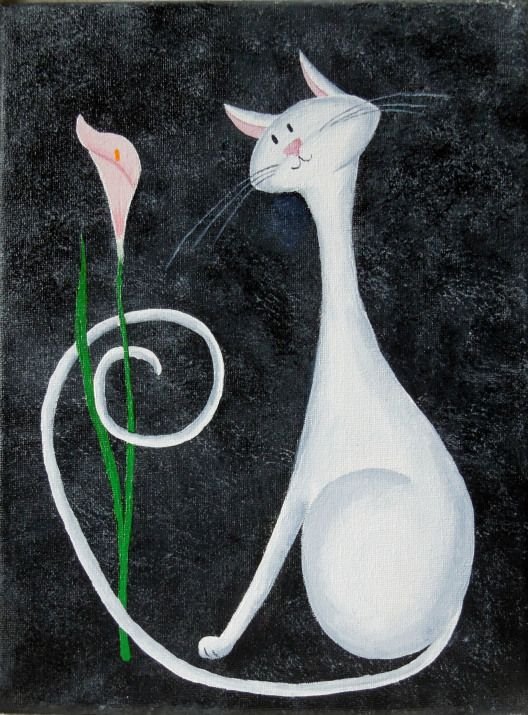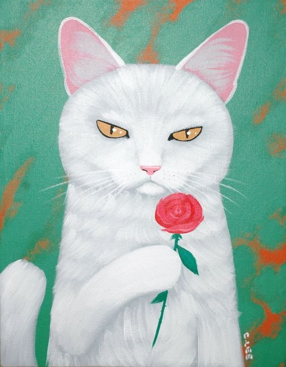 ![Белый кот живопись]()
