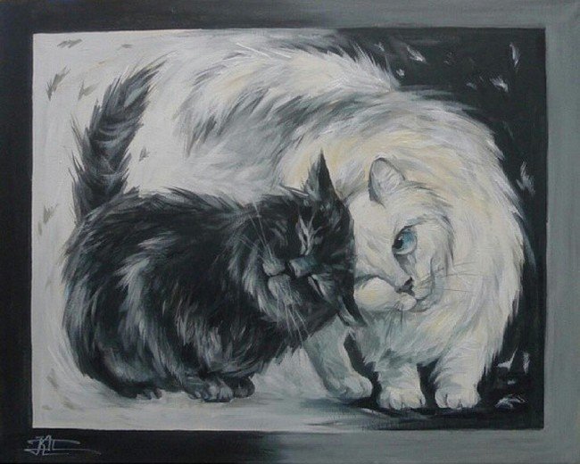 Чёрный кот и белая кошка арт